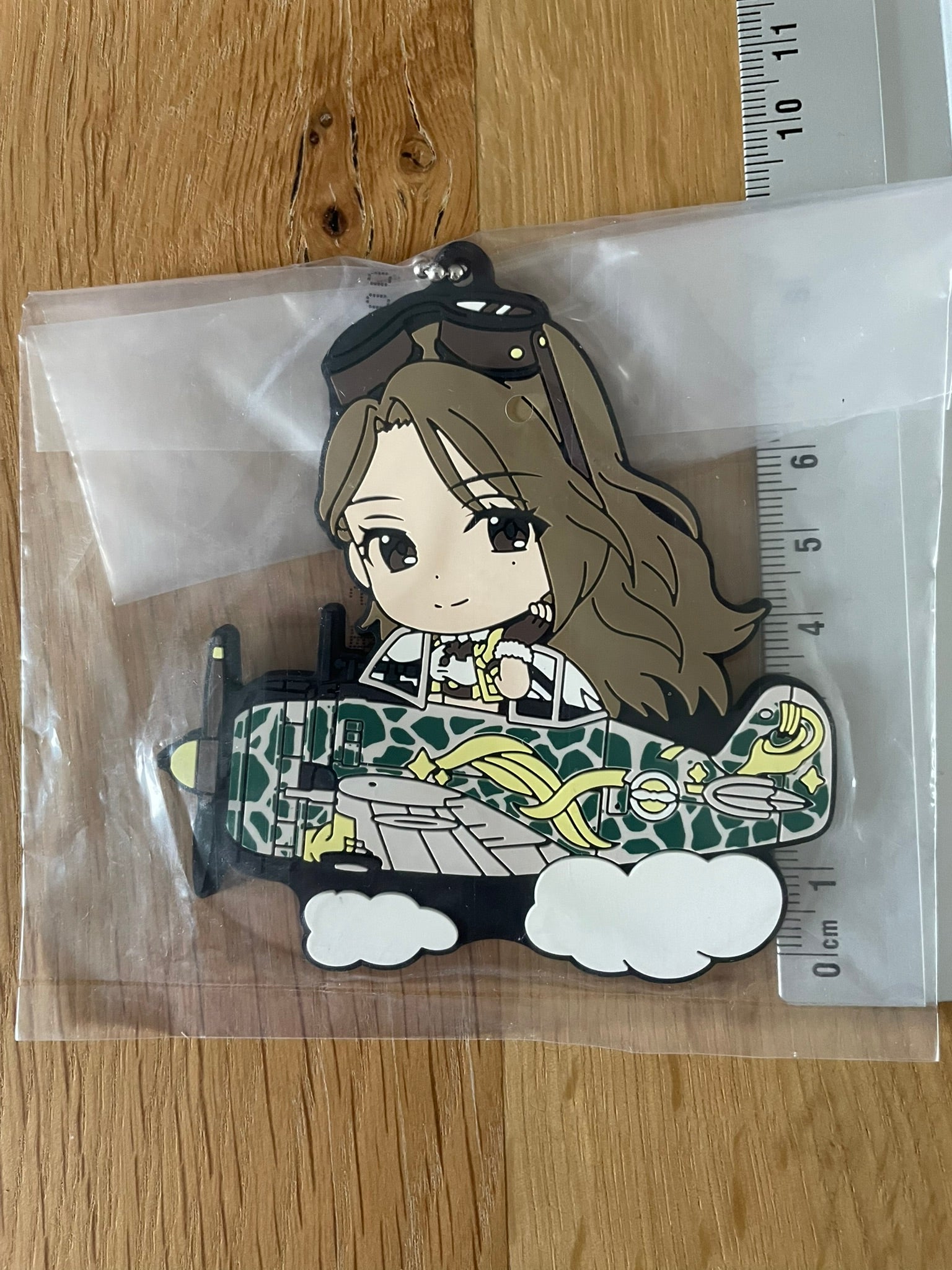 Ce porte-clés caoutchouc met en avant Zara, la capitaine expérimentée de l’escadrille Kotobuki, représentée dans un style chibi attachant à bord de son avion de combat. Sa chevelure brune et son uniforme de vol rétro reflètent son calme et son autorité naturelle.